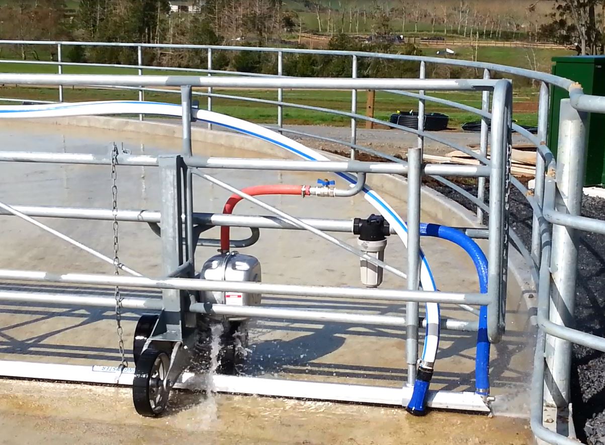 The efficient use and or reuse of water is now paramount. Gate mounted 'Dungbusters' are the most common method of achieving automatic yard washing with up to 40% saving in water usage. Using 'green' water is the new smart way to wash and conserve.